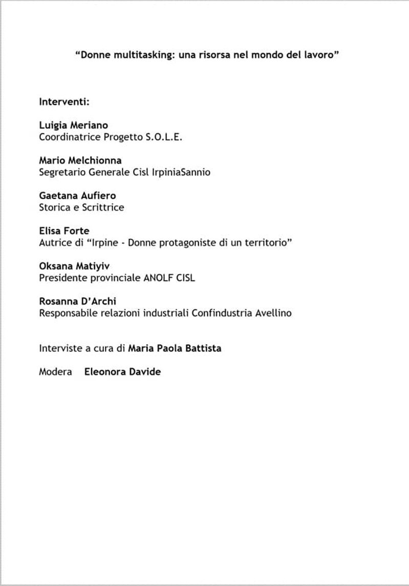 Incontro dal titolo “DONNE MULTITASKING: UNA RISORSA NEL MONDO DEL LAVORO”